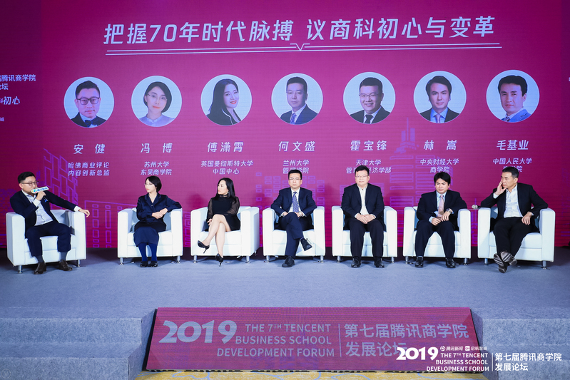 由腾讯新闻主办的2019第七届腾讯商学院发展论坛于11月12日在北京成功举办,国内众多知名商院院长、主任,权威机构负责人以及资深财经媒体人齐聚一堂,以“共谋教育发展,再铸商科初心”为主题,共同探讨新形势下商科教育的初心与发展。经管院副院长王子龙、MBA中心执行主任杜刚应邀出席论坛。