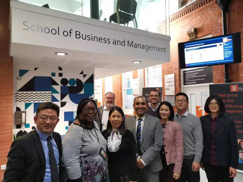 在皇家霍洛威学院访问期间,代表团成员与Gloria Agyemang院长、G. Hari Harindranath副院长及霍洛威学院的数名教师一起参加了南航经管学院青年教师短期进修活动的开班仪式,南航经管学院青年教师代表何沙玮副教授就如何有针对性地提高国际学生授课效果做了经验分享,引起与会教师的极大兴趣和热烈反响,中间不时有互动交流,展现了南航经管学院在国际化教育方面的风采,也为下一步双方合作打下良好基础。青年教师短期进修活动是南航经管学院“215”国际化计划的一部分,旨在提升青年教师教学科研水平、扩大国际化视野。开班仪式结束后,南航经管学院教师与皇家霍洛威学院工商管理学院的教师就教师发展与教学能力提升进行了深入交流。