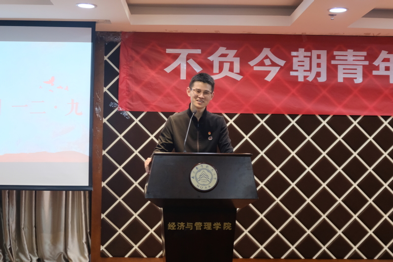 12月9日晚,必赢线路检测3003no1“不负今朝青年志,七十华诞爱国情”—— 一二•九爱国教育素养公开课在学院A0305报告厅成功举行。必赢线路检测3003no1党委书记焦宏图、校团委副书记董羽、学院经济系教授江可申、学院团委书记刘小杨、本科生辅导员和团学骨干近200人共同参加了此次活动。