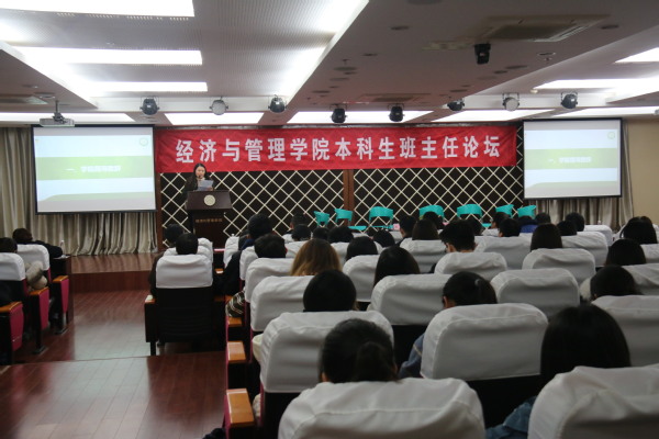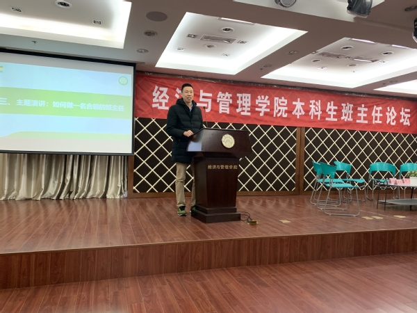 论坛开始,涂志宏代表学院领导致辞,对过去一年班主任在人才培养工作的付出表示了感谢与肯定,希望班主任老师们能以论坛为契机,聚焦问题,研讨方法,加快高水平本科教育建设;2016级卓工班班长赵雪代表学生骨干回顾了班主任在班级建设、学生成长方面的点滴付出,感恩班主任的悉心指导以及学院的全方位支持;罗正军从回忆自己初任班主任的情景,由点及面指出相比辅导员面对的全年级学生,班主任面对的班级学生受众面小,能够更聚焦、更精准地帮助学生解决问题,呼吁广大班主任用心用情呵护关爱学生;2016级本科生辅导员田苑娜汇报了经管学院本科生班主任实施情况报告,通过数据传达了同学们对老师们的感恩及诉求,也反映出未来有待改进的问题与不足。