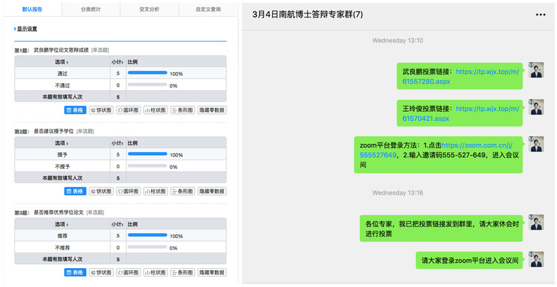 答辩过程中,按照必赢线路检测3003no1研究生学位论文答辩要求,两位学生通过论文内容陈述展示了研究成果,对答辩委员会成员的提问质询进行一一解答。答辩完成后经过答辩委员的线上讨论、投票表决,一致认为两位博士研究生的研究成果、学位论文和答辩过程达到了博士学位的要求,建议学位委员会授予博士学位。为了确保学位论文线上答辩的公开、真实、完整、使线上答辩有据可循。整个答辩过程,以及后续的匿名表决环节都做了录屏、截屏,作为答辩记录留存。