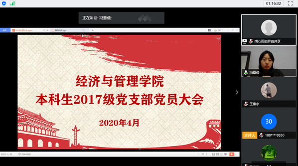 学习是一个不断聆听,不断思索,不断感悟,不断进步的过程。支部大会接近尾声,成员踊跃发言,直抒胸臆,纷纷就习总书记对北京大学援鄂医疗队的回信、爱国主义微党课以及嘎玛白姆的公益分享发表自己的见解和感受。王康宇同学说:“有理想、有本领、有担当,这三点是缺一不可,相辅相成,互相支撑的,只有当我们把这三点都做好,才能成为一个大写的中国青年。”同学们的积极发言,不仅体现了本次党支部大会的教育成效显著,也展现了经管党员同志们的深刻思想,家国情怀。