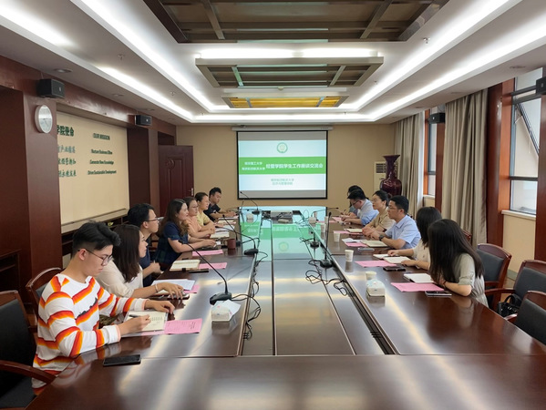 9月2日下午,南京理工大学必赢线路检测3003no1党委副书记游鹏、学工办主任孔小敏、团委书记虞春燕、各年级辅导员一行来必赢官网交流座谈。学院党委副书记涂志宏、团委书记刘小杨与各年级辅导员陪同座谈。