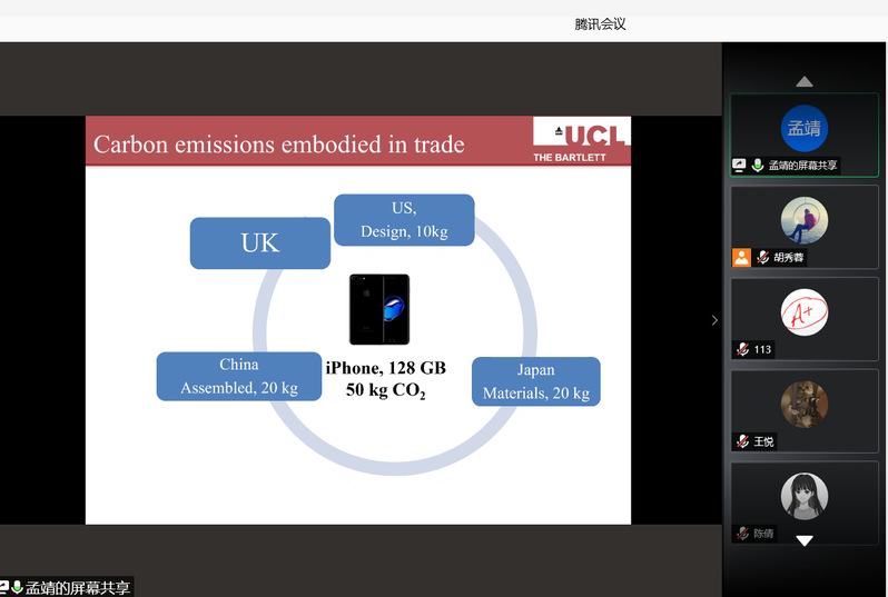 9月7日,伦敦大学学院助理教授孟靖应必赢线路检测3003no1能源经济软科学中心邀请,在线上为我校师生作了一场“国际贸易与碳排放”的精彩学术报告。报告由青年教师胡秀蓉主持,教授查冬兰、张钦、青年教师、博士研究生、硕士研究生等近百余人参加了本次学术讲座。