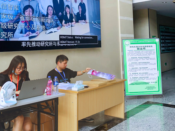 8月30日上午,校党委书记郑永安书记带队专程来到必赢官网研究生迎新报到处,详细询问了学院迎新报到工作的开展情况,表达了学校对于2020级研究生新生的关心和慰问,同时领导们对学院将新生科研诚信学风建设融入迎新宣传的做法予以了赞扬和肯定,并希望学院能进一步加强科学家精神的培育工作,为国家高层次科研人才充实后备力量。