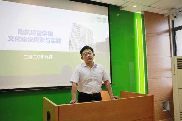 讲座中,周德群院长首先就文化建设对学生成长、教师传承、学院发展的重要意义进行了讲解,指出大学文化是在长期教育教学实践中逐渐积淀而成,被师生集体认同并遵循的价值观念和精神准求,好的文化能够塑造人、凝聚人、激励人。