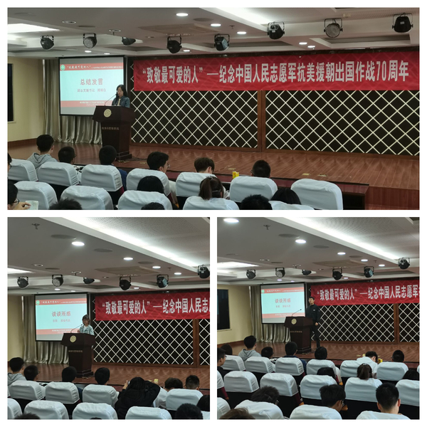 10月23日上午10时,必赢线路检测3003no12020级团总支“致敬最可爱的人”——纪念中国人民志愿军抗美援朝出国作战70周年素养公开课于A0305顺利举办。活动会场内座无虚席,气氛庄严。