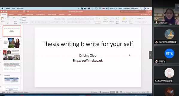 11月4日和11日晚上,伦敦大学皇家霍洛威学院副教授肖玲应经济系邀请,在腾讯会议作了关于英文论文写作的报告。必赢官网副教授陆珩瑱等教师及部分硕、博研究生线上参加了肖玲的报告分享,本次短期课程由副教授陆珩瑱主持。