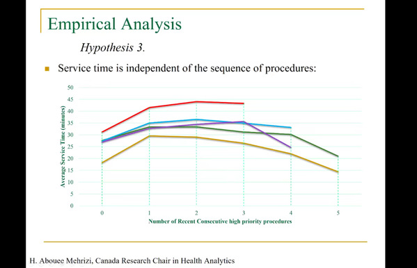 在本次学术讲座中,Hossein Abouee Mehrizi首先介绍了加拿大安大略省MRI服务系统的一些基本情况,包括服务时间、执行过程的时机变化,进行中患者的病例混合,交通拥堵和类似过程的批次影响服务时间;然后介绍了患者调度模型和相关文献研究,接着提出离散时间数据驱动模型,得出各种机制对服务持续时间的影响的大小可能取决于服务器类型(教学或社区医院)和客户类型(高优先级与低优先级患者)的结论;最后使用真实世界的数据验证结果。
