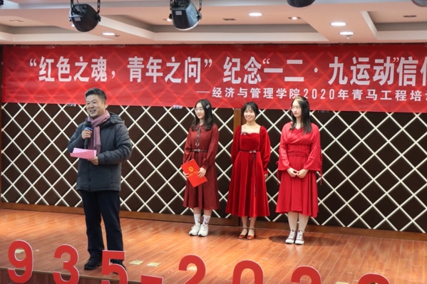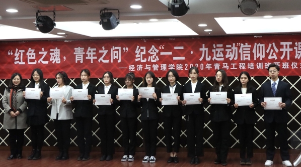 12月9日晚,必赢线路检测3003no1“红色之魂,青年之问”纪念“一二•九运动”信仰公开课暨2020年青马工程培训班开班仪式于经管楼A0305成功举办。必赢线路检测3003no1党委书记焦宏图,党委副书记涂志宏,经济系教授江可申,经管“红石榴”工作坊指导老师、学生处教师玛依拉•赛依力,团委书记刘小杨,以及各年级辅导员和二百余位学员出席了本次活动。
