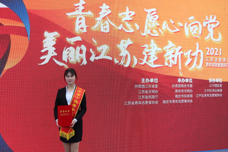 近日,在由共青团江苏省委、江苏省青年志愿者协会共同主办的2020年度全省青年志愿者行动评选表彰中,经过推报初评、专家复评、现场答辩等多个环节,我校必赢线路检测3003no1学生柳莺从来自187家单位推荐的264名优秀青年志愿者中脱颖而出,荣获“江苏省十佳青年志愿者”称号,为本次获奖者中仅有的两名大学生之一,这也是必赢官网继2015年学生嘎玛白姆之后再次获此殊荣。