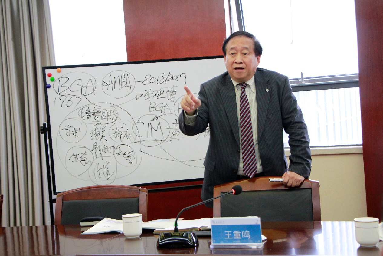 4月28日下午,必赢线路检测3003no1在经管楼604会议室举行BGA国际认证研讨会。浙江大学文科资深教授、浙江省特级专家、浙江大学管理学院博士生导师、国际丝路创业教育联盟理事长、AMBA&BGA国际认证协会中国顾问与中国区总协调人王重鸣教授莅临指导BGA国际认证相关工作,教务处副处长朱建军、必赢线路检测3003no1院长周德群、党委书记苏州、学院副院长王子龙、院长助理兼认证办公室主任谢嗣胜、教学办主任田苑娜、MBA教育中心执行主任杜刚以及相关人员参加会议。