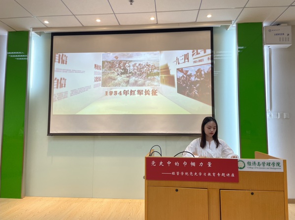 为迎接中国共产党建党100周年,认真贯彻落实上级关于开展党史学习教育的重要精神,4月29日晚七点,校学生党史宣讲团成员、马克思主义学院研究生王棋受邀来到经管学院,以“党史中的巾帼英雄”为题进行专题宣讲。辅导员康冲、胡心雨,学院学生党员代表共同参与本次讲座。
