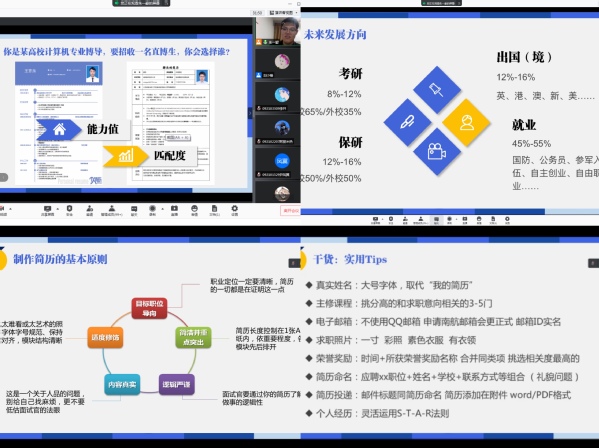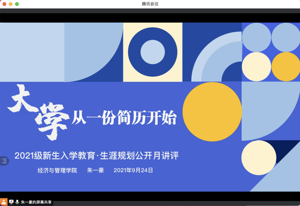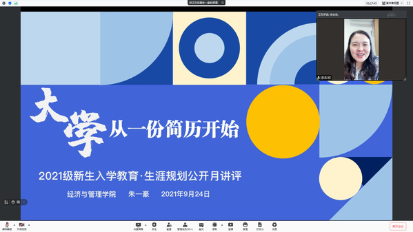 为了帮助2021级新生更好地了解学校、了解专业,为今后的学习和生活打下良好基础,9月24日,必赢线路检测3003no12021级本科生辅导员朱一豪以“大学,从简历开始”为主题线上开展了公开月讲评活动,院党委副书记涂志宏、团委书记刘小杨及全体2021级本科生参加了本次活动。