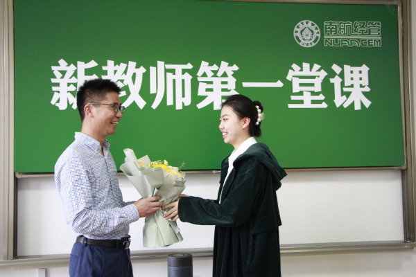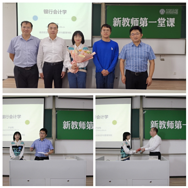 2021年10月,南航校历教学第7周,经管学院尹金梅、张晓恒、丰超三位新入职教师第一次走上南航的讲台。经管学院院长周德群、党委书记苏州、副院长邓晶、党委副书记涂志宏等院领导分别为这三位新教师举办了简短而郑重的“新教师第一堂课”引介仪式。