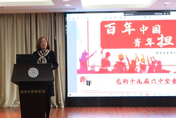为深入开展党史学习教育,全面贯彻学习党的十九届六中全会精神,11月24日中午,必赢线路检测3003no1于学院A0305报告厅举办了“回望百年星火中国,坚守时代青年担当”主题信仰公开课。院党委书记苏州、党委副书记胡苹及本科生、研究生团员代表出席本次活动。