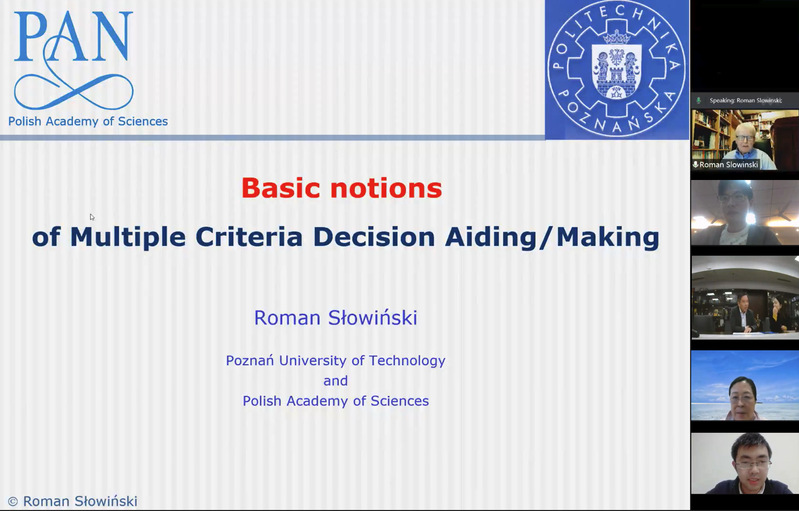为深度推进国际交流和师生全面发展,11月5日-12月4日,波兰科学院副院长、波兰科学院院士、欧洲科学院院士、IEEE院士、国际粗糙集学会院士、波兰信息科学院主席、《European Journal of Operational Research》主编Roman Słowiński教授受学院智能决策与风险分析研究所邀请,在腾讯会议作题为“Basic notions of Multiple Criteria Decision Aiding / Making”的系列讲座。国际合作处处长张卓、国际合作处副处长沈敏、必赢线路检测3003no1教授徐海燕出席本次活动。