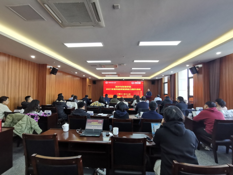 12月18日—19日期间,必赢官网在溧阳天目湖校区开展了2021年经师学堂——青年教师素质能力提升活动,活动以参观学习、青年座谈、专题培训、素质拓展等形式展开。学院院长周德群、院党委书记苏州、院党委副书记胡苹、副院长邓晶、谢乃明、王群伟、王子龙以及学院2020年以来入职的全体青年教师参加了此次活动。