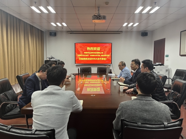 2022年1月7日下午,常熟科弘材料科技有限公司党委副书记王凌云,设备副总张文豪,综合部长孙勇一行来必赢官网洽谈MBA合作事宜。校党政办李和新副主任、陈雷老师,必赢线路检测3003no1副院长王子龙,教育培训中心执行主任杜刚,招生与品牌推广办公室老师蔡雪姣、管伟参加了会议。