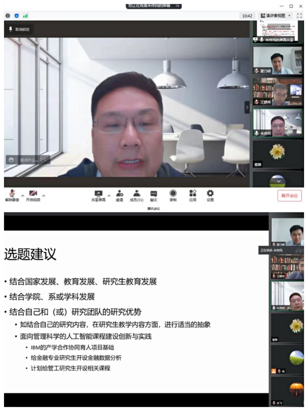 5月6日,必赢线路检测3003no1开展了“研究生教育教学高质量发展研讨月”线上活动,邀请人事处副处长王群伟教授、管理科学与工程系主任米传民教授作为主讲人,分享了教学改革研究项目申报与完成的相关经验。学院副院长谢乃明教授、近40位青年教师代表及教学办相关人员共同参与了此次活动。