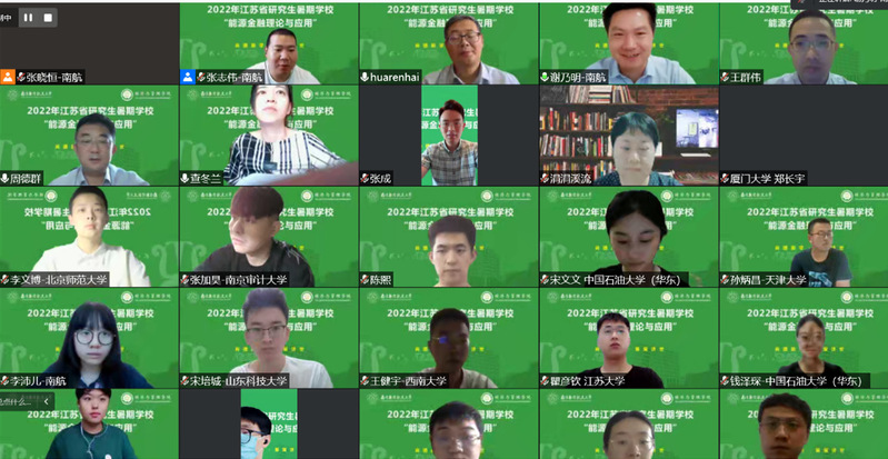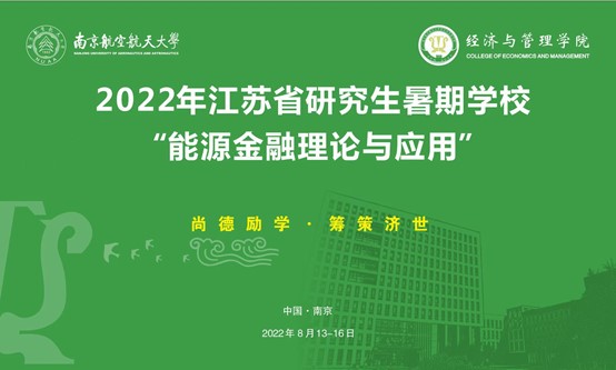 8月13日至16日,2022年江苏省研究生“能源金融理论与应用”暑期学校在线上平台成功举办。本次研究生暑期学校由江苏省经济学类研究生教育指导委员会主办,必赢线路检测3003no1承办,中国“双法”研究会气候金融分会、中国能源学术联盟和国际能源转型学会协办。