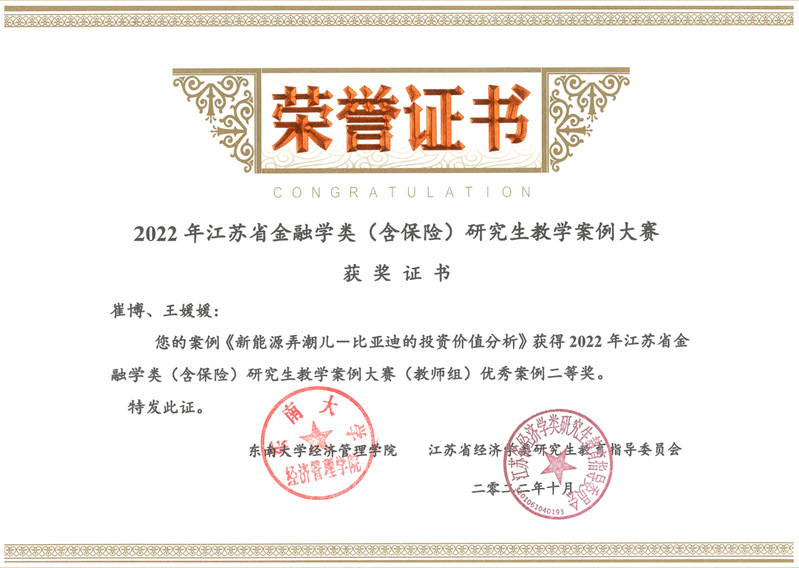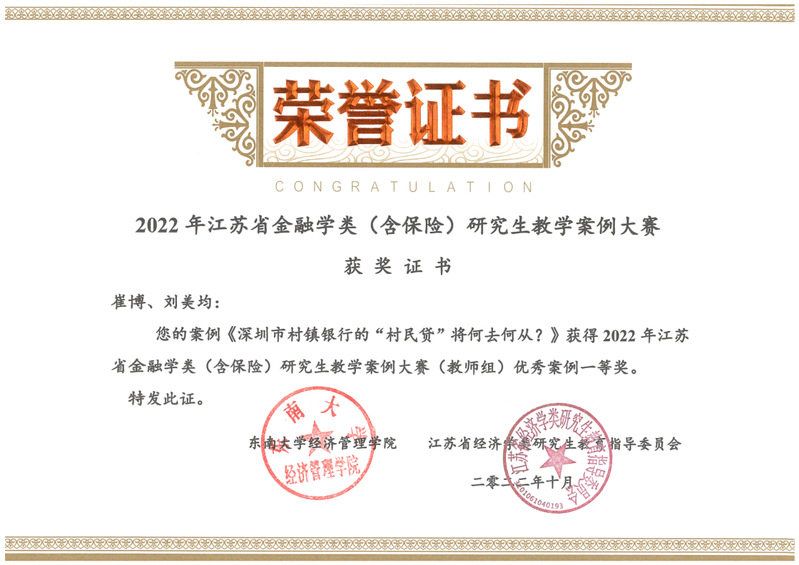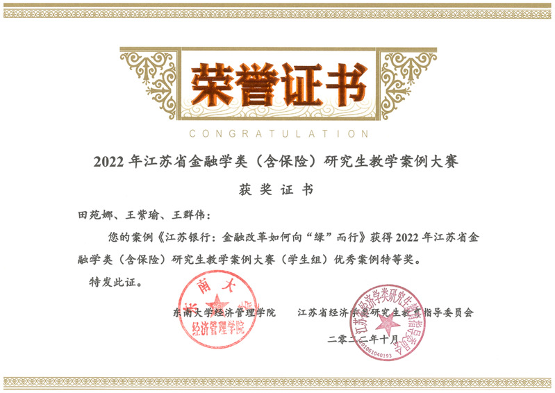 近日,江苏省经济学类研究生教育指导委员会公布了2022年江苏省金融学类(含保险)研究生教学案例大赛评选结果。经过大赛组委会通讯评审、专家会评、线上答辩等环节,必赢线路检测3003no1师生在此次大赛中取得佳绩,并斩获特等奖1项、一等奖1项、二等奖1项。