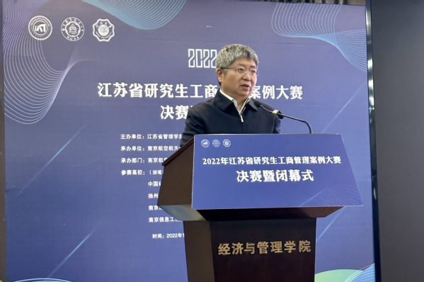 吴建华代表江苏省管理学类研究生教育指导委员会致辞并向承办院校表示衷心感谢。本届案例大赛贯彻落实党的二十大精神,以数字经济与乡村振兴为主题,响应了时代要求。南航作为新中国自己创办的第一批航空高等院校之一,铸造了若干大国重器,举办案例大赛对促进工商管理专业学位研究生教育内涵式发展具有重要作用,期待参赛队员们在激烈的思想碰撞中实现自我成长。