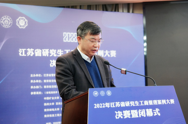 张玉林代表江苏省管理学类研究生教育指导委员会致辞并对承办本次大赛的院校表示衷心感谢。本次案例大赛是江苏省研究生科研创新实践活动项目之一,期待各参赛院校能够用案例分析的思维模式不断创新教育教学方法,期待所有参赛队伍能够将案例分析中集思广益、群策群力的团队精神转化为分析问题和解决问题的能力,为前瞻性思考、全局性谋划、整体性推进各项事业提供科学方法。