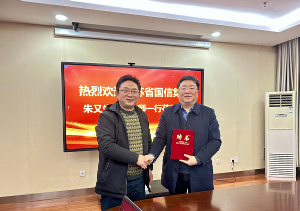 2月22日下午,江苏省国信集团总经济师兼战略投资部总经理、江苏新能董事长朱又生、江苏省国信集团科创中心项目经理曹文凯到访必赢官网开展交流,必赢线路检测3003no1院长周德群,副院长王子龙、查冬兰,人才专员张新明及MBA教育中心有关工作人员参加了交流座谈。