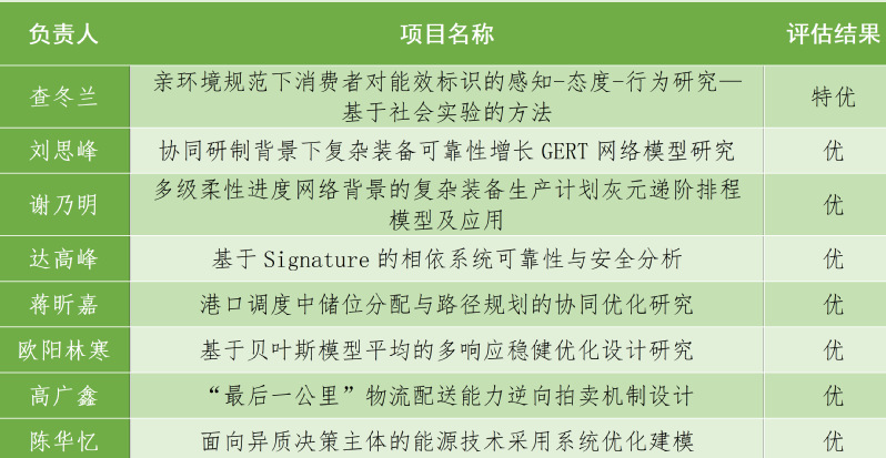 刘思峰教授、谢乃明教授、达高峰教授、蒋昕嘉副教授、欧阳林寒副教授、高广鑫副教授、陈华忆7位老师主持的项目后评估为“优”。