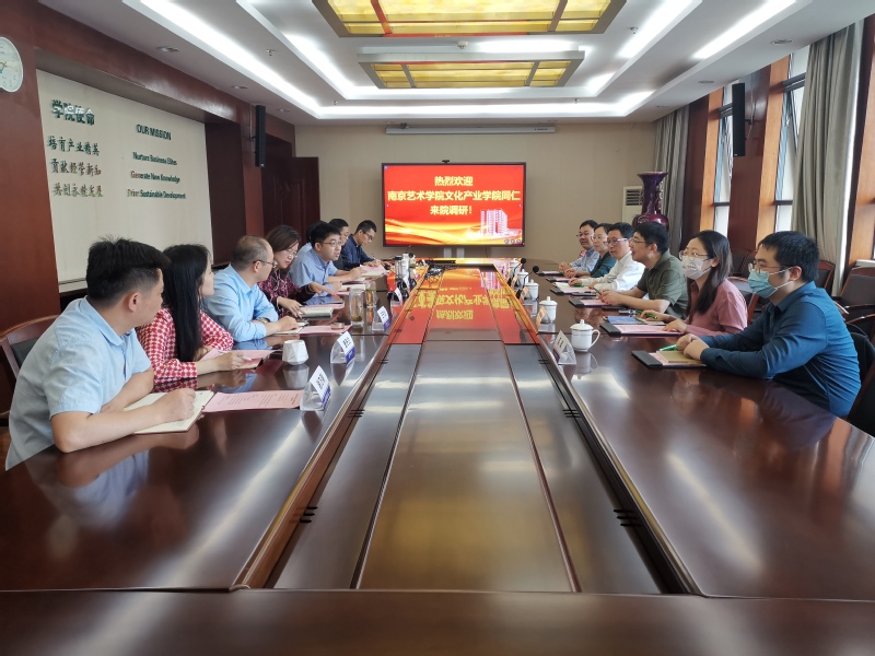 6月6日下午,南京艺术学院文化产业学院院长王晨一行来访必赢官网,必赢线路检测3003no1院长王群伟,党委副书记胡苹,副院长邓晶、王子龙、谢乃明、查冬兰,院长助理欧阳林寒、周志鹏等参加调研座谈会。