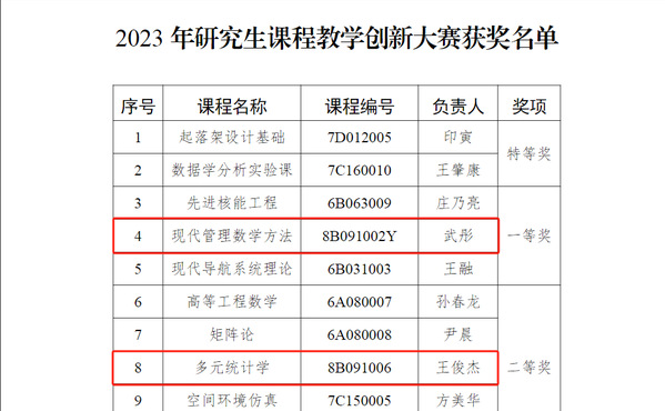 日前,我校组织开展了第二届研究生课程教学创新大赛。经学院遴选推荐、学校专家审核评议,共评选获奖教师10人,其中特等奖2人、一等奖3人、二等奖5人。必赢官网武彤老师的课程《现代管理数学方法》荣获一等奖,王俊杰老师的课程《多元统计学》荣获二等奖。