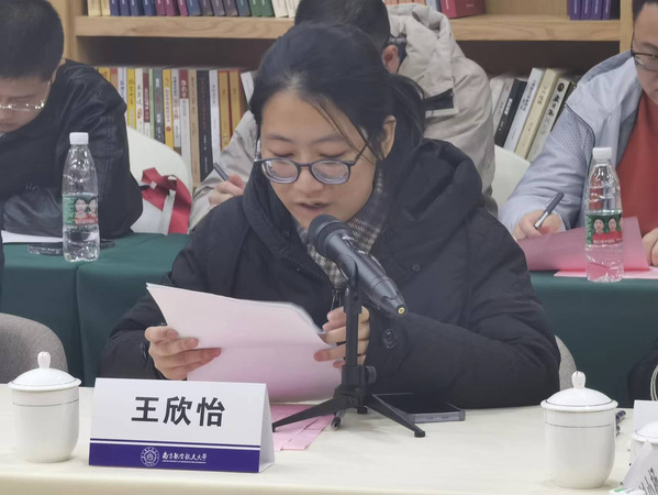 经管学院工商系研究生第二党支部党员王欣怡分享了学习习近平总书记对宣传思想文化工作作出重要指示的心得体会。她认为当代青年要深刻领会习近平文化思想,讲好青年故事,传递青年声音,肩负起新的文化使命。