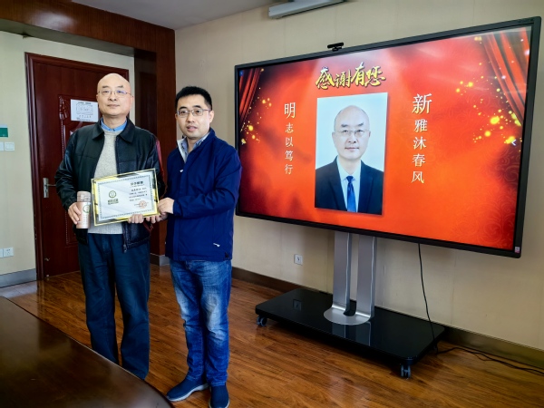 讲座交流结束后,学院还为张新明举办了荣休仪式。院长王群伟为张新明颁发了荣休证书并赠送了学院工会精心为张老师定制的印有“新雅沐春风 明志以笃行”字样的专属纪念礼。王群伟期待张老师继续为经管学院的工作发展建言献策,充分发挥资深教师的传帮带的作用,并鼓励在场教师以张老师为榜样,不断锤炼过硬本领,做本职工作的“行家里手”,在新的起点上努力开创经管学院发展的新局面。