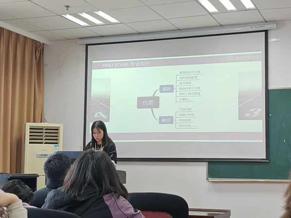 同时,本次宣讲活动也邀请了两个专业大四的优秀学姐分享了在专业学习过程中的经历经验与心得体会。课程设置、升学去向、学习中的常用软件,朋辈学长的现身说法,不仅使同学们对专业有了更深入的理解,同时也指明了未来的学习方向,提供了未来专业学习的方法参考。