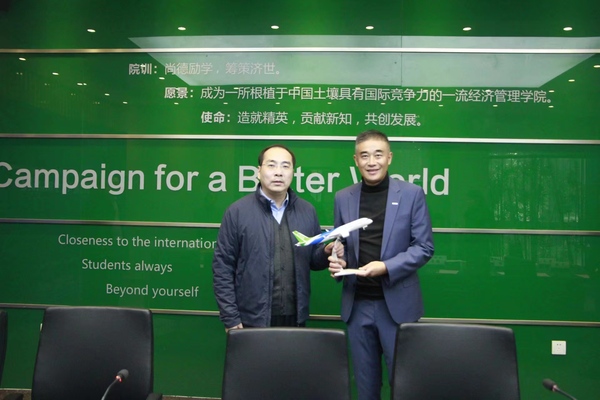 活动交流期间,副院长欧阳林寒引领舍弗勒首席运营官潘朔端一行先后参观了院史馆和南航御风园,展示介绍了经管学院40年发展历程以及带有我国航空航天发展时代烙印的各类飞行器。