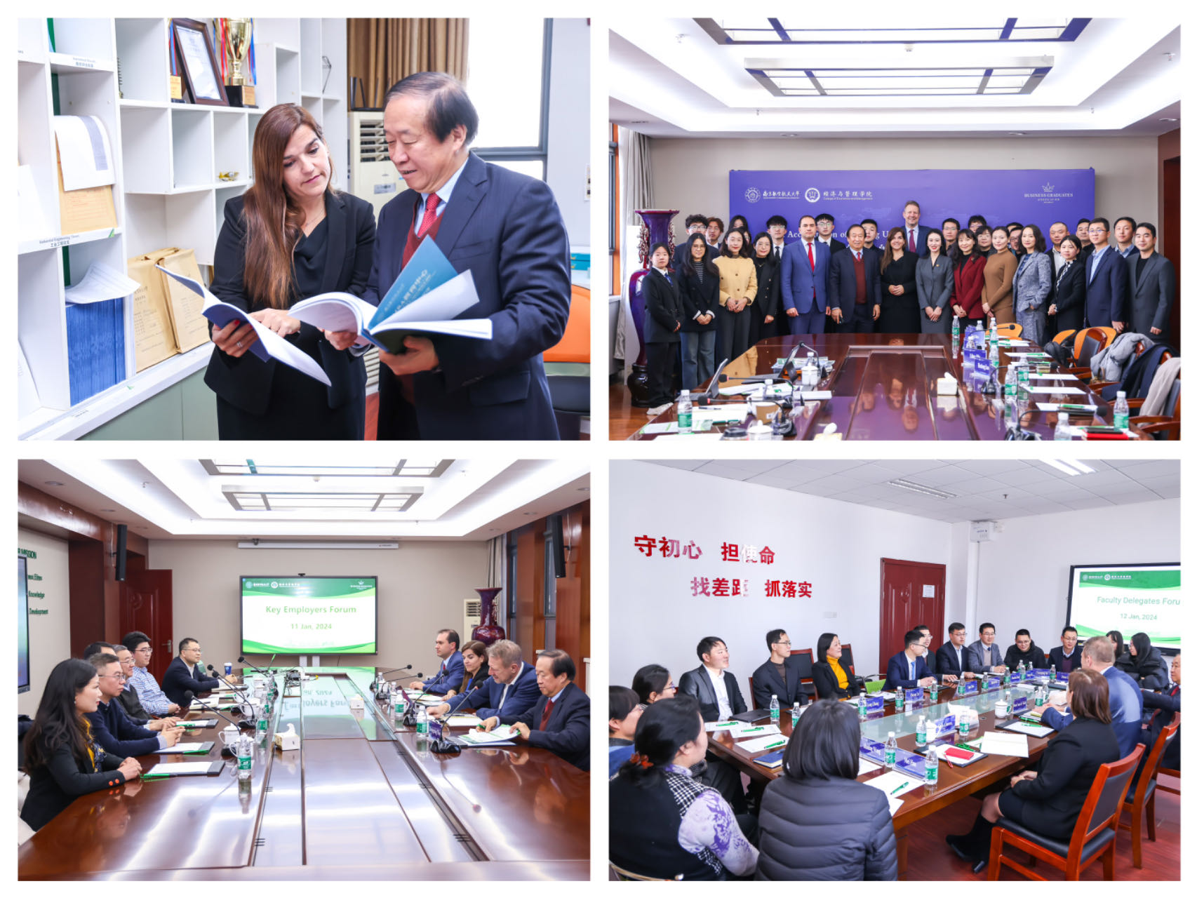 2024年1月11日至12日,由BGA国际认证咨询委员会主席/荷兰鹿特丹管理学院前任院长Steef van de Velde教授、英国帝国理工学院商学院副院长Leila Guerra女士、浙江大学文科资深教授/ BGA中国区总负责人王重鸣教授、BGA认证总监George Iliev先生组成的专家组来校进行了为期两天的现场访视。