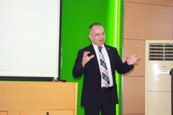 首先,Gürkan S. Kumbaroğlu教授应郝晓晴老师邀请,为必赢官网师生作了题为“Energy Transition in Europe: Renewable Power Generation, Hybridization and E-Mobility for Sustainability” 的精彩学术报告,五十余名师生现场参与。Gürkan S. Kumbaroğlu教授以生动的可持续项目案例为切入点,展示了欧洲的能源转型和技术进步的前景与挑战,为必赢官网师生拓展了关于经济高效和清洁低碳的能源高质量发展问题的研究思路。